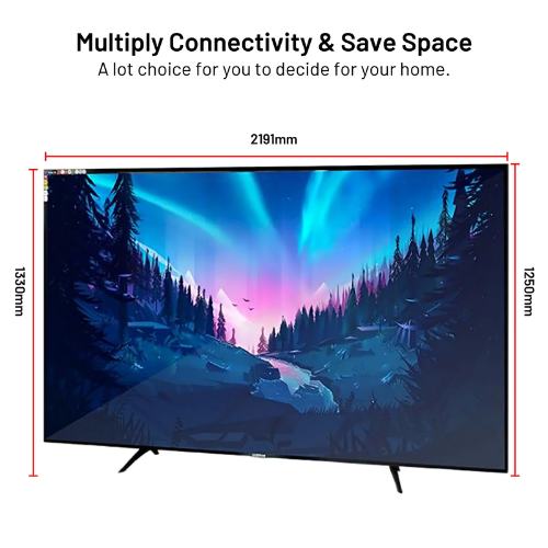 SamView Digital LED TV provides stunning, vibrant colour via its Ultra HD 4K panel and wifi power to the home users. It supports Android 11.0 operating system and provides strong connectivity via its internal 1.5G+8G RAM. SamView is using new A+ panel. SamView 100″ LED TV has apply new technology with a tempered glass to protect the screen from broken by transportation or kids at home, and equipped with GOOGLE VOICE Assistance for ease voice searching.