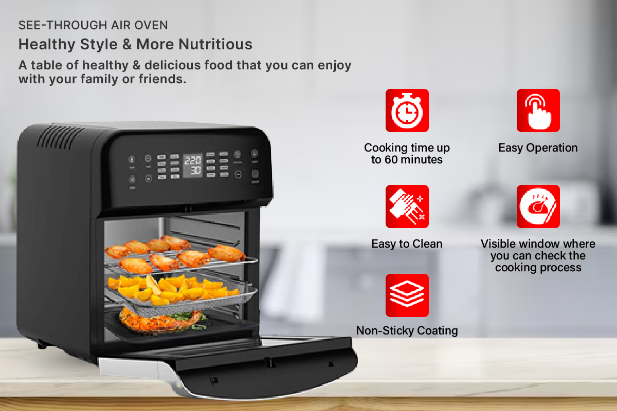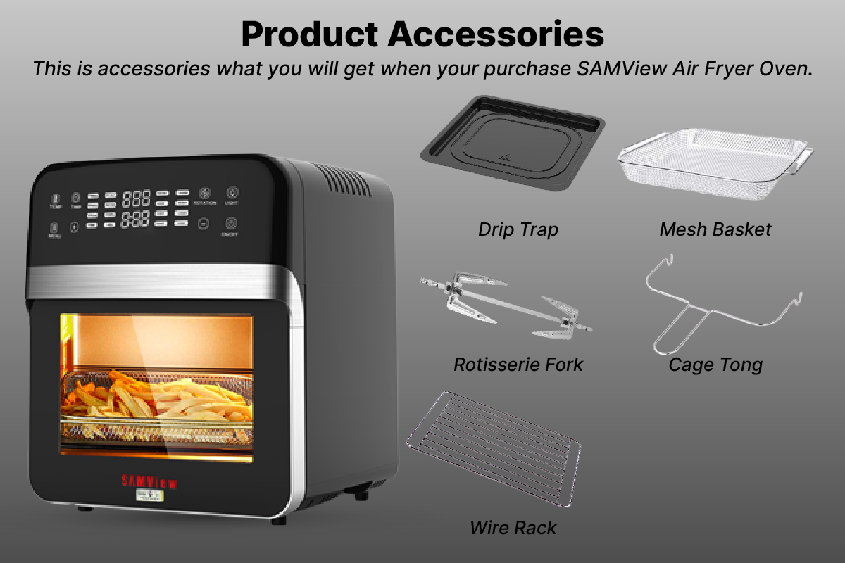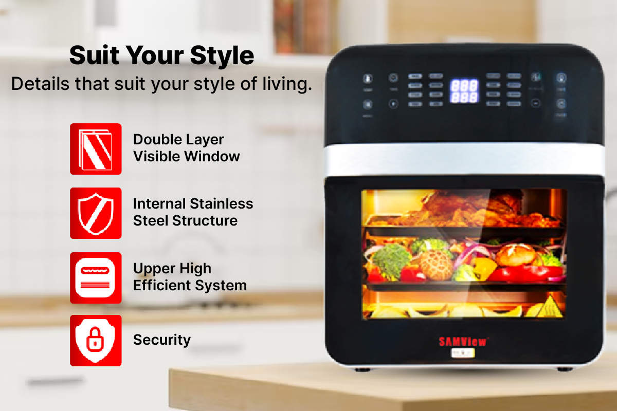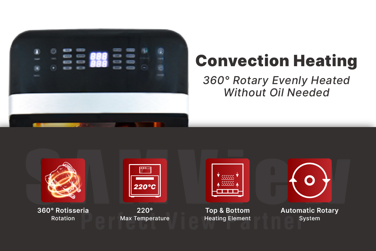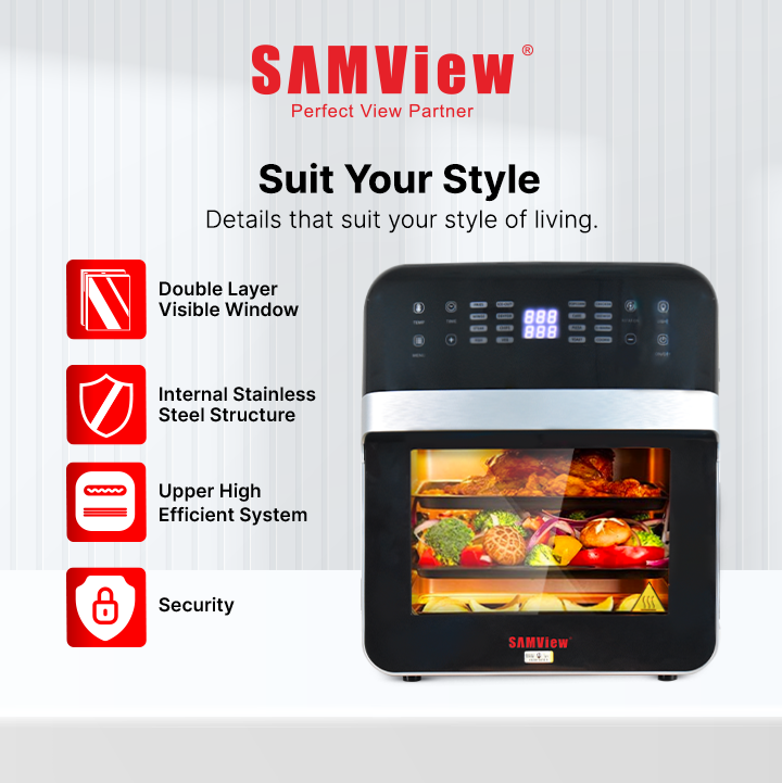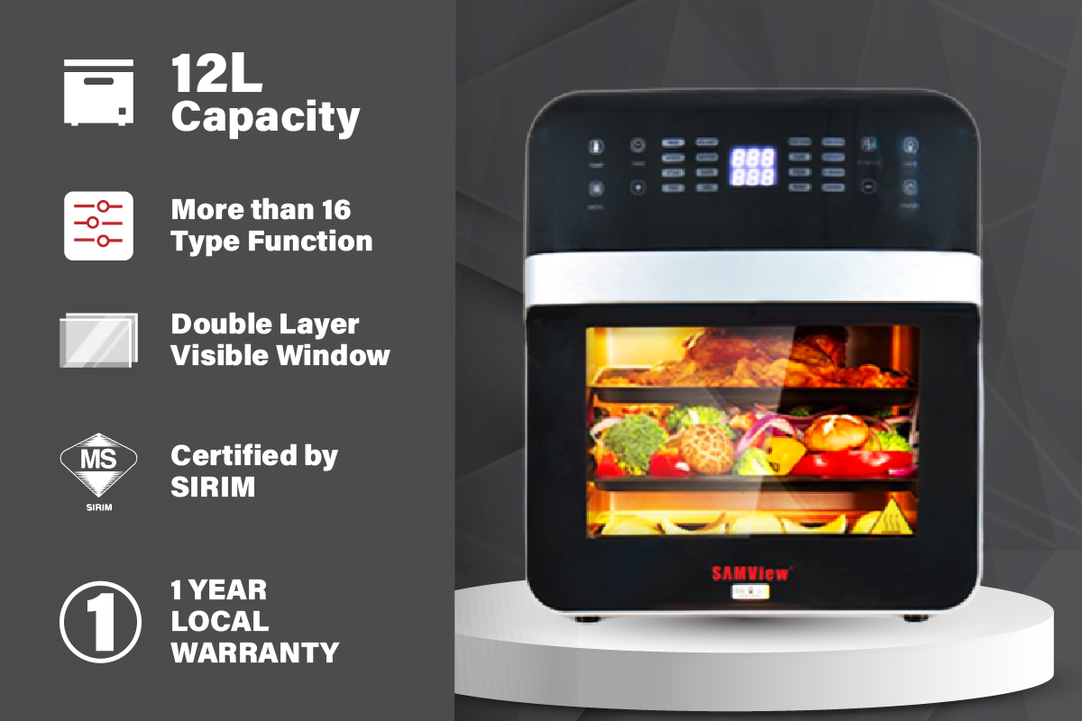 SamView Multi-purpose Digital Touch Screen Air Fryer and 360° Rotisserie Oven 12L WITH SIRIM MALAYSIA APPROVED