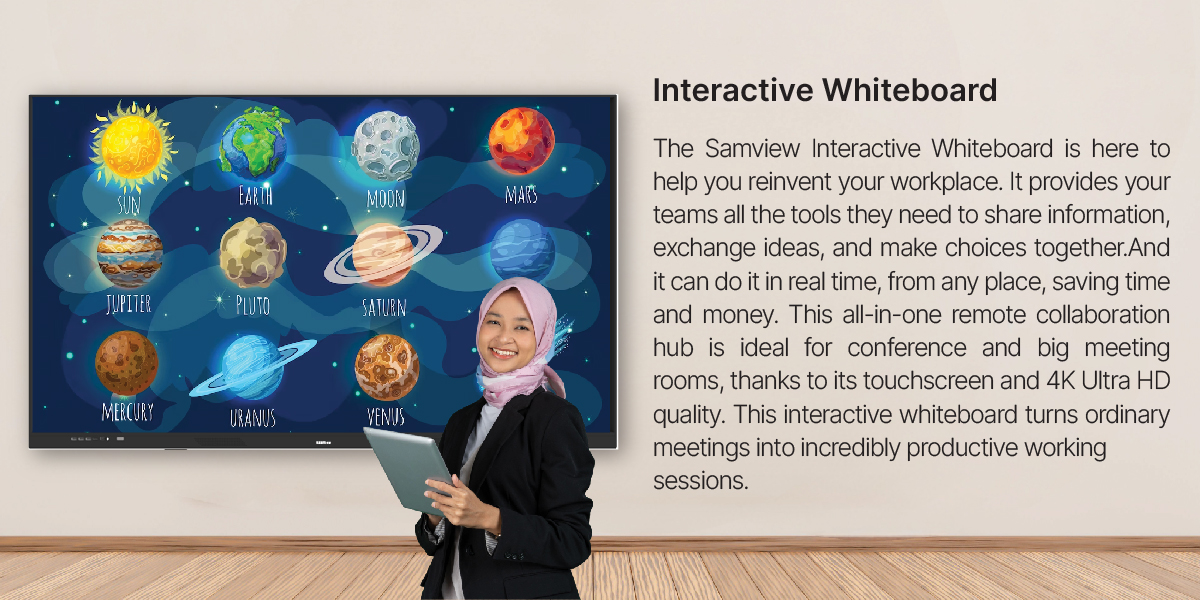 Are you tired of the limitations of traditional blackboards? Upgrade your teaching, presentations, and public speaking with our state-of-the-art 65-inch 4K Interactive Whiteboard! Designed for Malaysia’s educational workers like teachers, tutors, and public speakers, this smartboard will take your classroom or presentation to the next level.