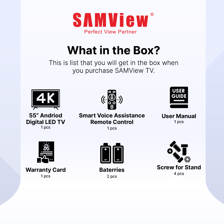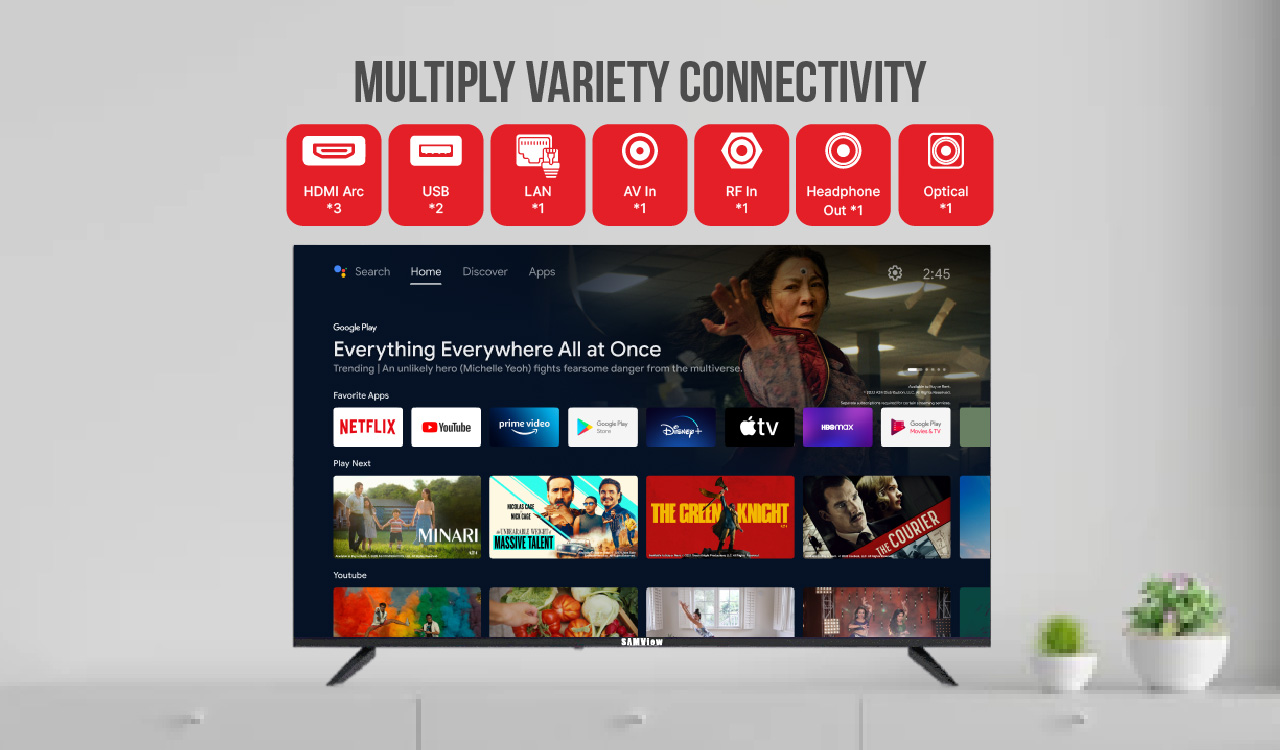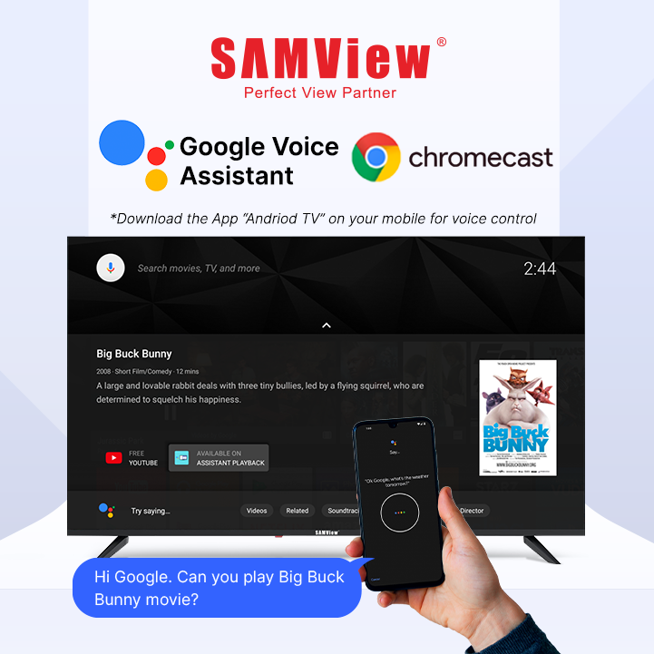 SAMView 55″ Licensed Google Android LED TV with Bluetooth & Google Chromecast & Voice Assistant