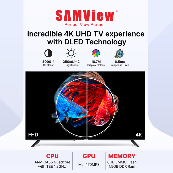 SamView 55” 4K UHD Licensed Android Digital LED TV
